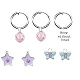 Bead is 4MM in diameter and dangles from a 3/8" Hoop The Bead detaches in a flash, so you can wear the hoop alone. Flower dangle features light pink flower with crystal center. Flower is 1/2" (12mm) diameter. Star is about 1/4" (6mm) diameter with silver center.