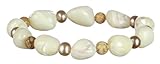 st and highest-quality are round. Akoya, Tahitian, and South Sea oysters tend to produce the roundest pearls, while those of Freshwater mollusks can be oval to slightly off-round. When considering a pearl purchase, whether it be a necklace, bracelet, or earrings, look for consistency in the shapes of the pearls. Many of the less symmetrical shapes are used in stylish jewelry which can be quite beautiful: the drop pearl’s shape lends well to earrings, and the baroque pearl features irregular shapes that work well as necklace accents. In addition, a half sphere pearl called a “mabe” is often used in earrings, necklaces, and bracelets.Size