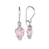 Sparkly rose pink genuine 8mm Swarovski Elements crystal butterflies have 4mm AB crystals on top and bottom and dangle from sterling silver ear wires that latch for security. �Made to match our butterfly necklace and bracelet. �.925 sterling silver.
