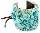 Add some unique style to your collection with the Lucky Brand Peace Corps Leather and Turquoise Cuff Bracelet. This wide leather cuff is adorned with polished natural-cut light blue turquoise stones in multiple sizes, stitched onto creamy yarn-like fabric. A leather tie loops around the matching button to keep this colorful bracelet on your wrist. Pair this DIY-inspired bracelet with skinny jeans and a plain black tunic for an artistic look that's ideal for a tasting at your favorite wine bar.