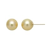 Glittering shades of gold give you a lumious glow in these 9-10mm, Golden South Sea pearl stud earrings. The natural gold body color of these AA pearls can range from a light champagne to a deep amber hue, and may exhibit silver, ivory, or rose overtones on their lustrous surface.