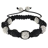MM Shamballa Bracelet White & Black Pave Disco Ball Beads Hip Hop Style