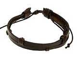 Made of 2 straps of real dark brown leather & bound together with dark brown cord. Adjustable so one size fits all - simply widen to desired size slip on then pull cords to tighten. Approximately 1 cm wide. A nice light & stylish bracelet suitable for anyone. .