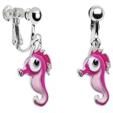 Create a colorful sea of style with these adorable seahorse earrings. Non-pierced earrings. Handmade Artisan crafted earrings. Handmade Screw back clip earrings.. Specifications: Approximately 1.25" Length, Rhodium Plated Clip-On Earrings, Nickel Free, Lead Free, Base Metal Charm, Handmade in the USA. Pink Seahorse Clip On Earrings