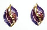 Purple Enamel Flower Clip Earrings
