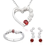 Pendant is on a cable chain and is 0.47 inches in height, 0.49 inches in width, and 18 inches in length with 0.92 grams in metal weight and 0.14 carats in gem weight. Earrings are 0.54 inches in height and 0.16 inches in width with 1 gram in metal weight and 0.27 carats in gem weight. Ring is size 7 and 0.14 inches in height and 0.08 inches in width with 1.67 grams in metal weight and 0.14 carats in gem weight.