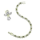S-style tennis bracelet is set in warm 14K Gold electroplate. Set with the Austrian crystal birthstone of your choice and alternating clear crystal. Bracelet is 7.5" length.