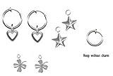 Set contains 2 star charms, 2 -4 leaf clover charms, 2 heart charms and one (1) pair of 3/8" hoops