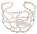 Light and airy this silver fashion jewelry bracelet is a welcome breath of fresh air. A beautiful bloom adorns this cuff style fashion bracelet. This flower is finished in silver tone and features an open work design.
