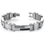 This mens stainless steel bracelet makes the perfect gift for yourself or someone you care about. It is right on the cutting edge of fashion with the stainless steel links and the combination of brushed steel and high polished steel. This mens bracelet has a fold over clasp for safety and comfort and alternating black and silver rope accents. It weights a substantial yet comfortable 75 grams, is 8 inches long and is 3/8 inch wide. Any guy is going to like wearing this mens stainless steel bracelet. Its just like those worn in all of the latest mens fashion magazines. This bracelet is shipped with an elegant presentation box and a satisfaction guarantee plus Free Shipping