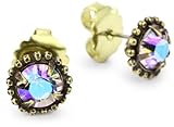 Timeless stud earrings receive a punch of flavor with the Sorrelli Round Simplistic Crystal Goldtone Post Earrings. A coated, round-shaped stone reveals an iridescent finish, bold enough to grant any outfit a glamorous look. The prong-set stone is wrapped in a studded brass basket trim that boasts the vintage-elegant style, signature to the Sorrelli line. A dazzling accessory for day and evening wear.