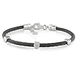 Stainless Steel and Sterling Silver . CT TDW Heart Diamond Black Cable Bangle