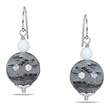 Sterling Silver CT TGW Rutilated Quartz, White Agate Dangle Earrings