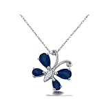 Pretty as a butterfly taking flight, this 1/4 carat diamond and sapphire butterfly pendant in sterling silver is sure to charm. This pendant comes on a complimentary 18-inch chain. It is a perfect piece of fine gemstone jewelry at a very affordable price. Order yours today!
