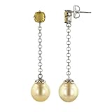 Classic pearls receive a colorful update with the Sterling Silver Golden Cultured South Sea Pearl and Whiskey Quartz Drop Earrings. Friction-back posts hold these delicate earrings secure on any ear. At the end of each post is a natural whiskey quartz stone that showcases its luxurious cushion cut in its four-prong setting. The calm color of colorful gemstone creates a unique contrast with the golden south sea pearl that falls from a rolo chain below each. The elongated pearls contain high luster against the sterling silver and showcase their great uniformity and nearly perfect surface. Wear your hair up to let these 1.5" long earrings shine in any light.