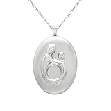 A sentimental piece to recognize the wonderful memories between a mother and child, the Sterling Silver Mother and Child Locket Pendant is a wonderful gift idea for any mom. Shining at the bottom of an 18-inch curb chain is a polished oval-shaped pendant design. The front of the pendant displays figures of a mother and child with hands embraced, showcasing their special bond. Finished with a spring-ring clasp, the pendant will keep a secure hold close to mom's heart.