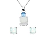 Simple and elegant, the Sterling Silver Opal and Blue Topaz Stud Earrings and Pendant Set presents a classic design that makes a wonderful gift. The pendant rests from an 18-inch box chain and showcases a simple round-shaped opal stone that is touched along the top by a small blue topaz gem. The same opal shape is matched with a pair of friction-back post earrings that bring iridescent sparkle to any look. A great gift for an October or December birthday.