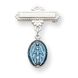 Sterling Silver Oval Blue Enameled Miraculous Medal Pin - Picture shown above is not actual size, it is to showcase the fine craftsmanship and quality.