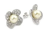 Wear your lucky four leaf clover on your ears with our floral design, Pave CZ Earring with Synthetic Pearl. Bring yourself the luck o the Irish with delicate cubic zirconium set against a backdrop of sparkling sterling silver and surrounding a smooth, eggshell colored pearl in its center. Their antiquated grace provides a perfect foil for the woman looking for a great sterling silver accessory to show off her feminine beauty and grace-night and day. Whether youre the type of woman who prefers her jewelry classic or trendy, these Pave CZ Earrings with Synthetic Pearls are the perfect compliment for your wardrobe, and if you order now their allure can grace your eardrums in plenty of time for your next big event.