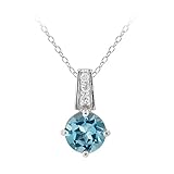 Elegant and defined, the Sterling Silver Round Swiss Blue Topaz with Cubic Zirconia Accent Pendant brings luxurious blue color to any accessory collection. A round-shaped blue topaz stone shows off its brilliant shine at the base of an 18-inch rolo chain that is finished off with a spring-ring clasp. The gemstone hands from a displayed of clear cubic zirconia stones that fill the pendant link with sparkle. This wonderful pendant is a classic gift idea for a December birthday or anyone who may love the bold blue color of the Blue Topaz stone.