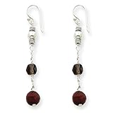 Sterling Silver Smokey Quartz and Jasper Antiqued Flower Earrings