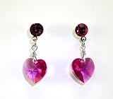 SWAROVSKI CRYSTAL HEART STUD DANGLE EARRING RODIUM -FUSCHIA mm