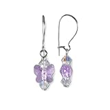 Sparkly violet purple genuine 8mm Swarovski Elements crystal butterflies have 4mm AB crystals on top and bottom and dangle from sterling silver ear wires that latch for security. �Made to match our butterfly necklace and bracelet. �.925 sterling silver.