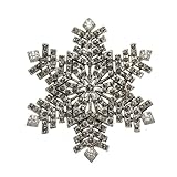 This pin is completely covered with genuine marcasite stones to give it a great sparkly appearance. Each point of the snowflake has a hand set clear cubic zirconia stone. Brooch is about 1 5/8 inch across and is made of rhodium plated brass. There are over 150 individually set marcasite stones. It is one of our best selling designs and is perfect for Christmas as well as year-round wear. Looks far more expensive than it is.