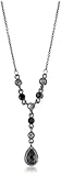 A classic known to many 1928 fashionistas, now available for everyone! Petite links of gleaming hematite tone gracefully lead to the sparkling crystals of the Y style pendant. Black diamond and jet color stones compete for the prize of being deemed "most brilliant" creating a sparkling contrast. The delicate teardrop accent bead is jet color with each facet highly polished and set to catch the light. A lightly etched jet frame embraces the stone creating a lovely antique feel. Simply a must have for every season!