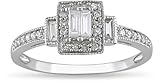 Gorgeous engagement ring features a center square sparkling with an array of icy diamondsJewelry is crafted of lustrous 10-karat white gold with twinkling side diamondsModern-looking engagement ring carries the traditional meaning of forever