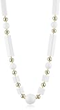 Chunky and bold, the "Jawbreaker Jewels" White Long Necklace by Kate Spade New York is just the thing to dress up any outfit. The single strand of beads is strung on strong, flexible cord that is knotted between each bead for a lighter feel. A mix of beads pattern this necklace in bright white with gold tones tossed in for contrast. Long and short tube beads combine with large rounds to create a handmade yet balanced appearance. The 31-inch-long necklace has no clasp, as it's designed to slip over your head for comfortable, easy wearing. Ideal for layering or great on its own, the Jawbreaker Jewels necklace will complement anything from a comfy T-shirt to a V-neck cocktail dress.
