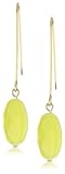 The "Urban Multi" Lime Semiprecious Stone Drop Earrings by Kenneth Cole New York achieve a classic style with a hint of the modern. These elegant linear drop earrings feature dangles made from smooth semiprecious stone beads. The beads have a warm lime-green tone and are faceted to sparkle in the light. Measuring .5 inch wide, the delicate oval beads are accented with tiny gold-toned spacers below. The dangles suspend from gold-toned elongated fishhook ear wires that allow them to drop to a dramatic 2-inch length. With their punch of unusual color and sleek silhouette, these earrings are sure to become a favorite of yours. Wear them out at night with a bright-colored beaded necklace--try plum, dark green, or aqua blue to complete your trendy look.