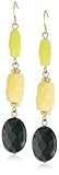 The mix of modern colors in Kenneth Cole New York's "Urban Multi" Multi Semiprecious Stone Linear Earrings is ideal for dressing up simple outfits. These earrings feature semiprecious stone beads wire-wrapped into gold-toned base-metal wire. A trio of faceted stones graces each dangle, with varied shapes and sizes that get gradually wider toward the bottom. Mixing lime with taupe and forest green, each dangle is accented with gold-toned spacers and a simple linear silhouette. The dangles measure .5 inch wide and 2.5 inches long with gold-toned fishhook ear wires for easy wearing. Pair these chic dangles with plain gold chains or beads to show off their brilliant jewel tones.