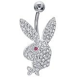The temptation of this navel ring is its Playboy Bunny icon shimmering with AB CZ crystal pave and red crystal eye accent.