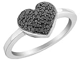 This stunning 1/4 carat (ctw) ring boasts fifty round, brilliant cut black diamonds claw set in a heart shape. This simple heart shape made of enthralling black stones is the perfect, lustrous crown for a band crafted from contrasting polished white sterling silver. View item video above. SKU: 68HE0622025:V5