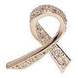 We will donate $10.00 for every one of these pins sold to the National Breast Cancer Foundation. Pin is a little over one inch long, is about 7/8 inch wide at the bottom of the ribbon, and is covered in hand set pink cubic zirconia. It is a tac pin as shown in the second photograph. It is made of sterling silver with rhodium plating so it will never tarnish and will always look like new. The tac pin hardware is brass with rhodium plating and not sterling like the rest of the pin. Made in Thailand.