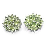 Here's a pair of showcase earrings that will become the talk of any formal occasion you wear them to! Boasting an impressive setting of 48 genuine peridot pears and rounds, these cluster earrings hold 3.45 carats of genuine peridots! Cast in .925 solid sterling silver with rhodium finish, this pair is the one to be cherished for a very long time!�