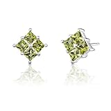 1.25 carats total weight of Gemstones. Peridot: 8 pieces, Princess Cut, 3.00mm. Each earring measures 3/8 x 3/8 inch and weighs 0.96 grams together. Retails for over $79.99 Earrings features one of a kind design with a beautiful White Gold finish. Earrings are in pure Sterling Silver and stamped .925.