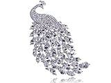 Beautiful elegant palm sized peacock pin brooch. The peacock has an elegant tail covered in large crystals. Handcrafted for the highly quality that can be afforded. Genuine Swarovski crystal rhinestones are used to ensure brilliant shine and radiance. Accent any outfit with our pin brooch, or give this timeless gift for that someone special.