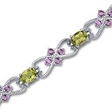 6.75 carats total weight Oval & Round Cut Peridot Amethyst Gemstone Bracelet in Sterling Silver Stones: Genuine Peridot : 7 pieces, Oval Cut 7x5mm Genuine Amethyst : 28 pieces, Round Cut 2.50mm 6.75 carats total weight Gemstones have a deep rich color and tremendous fire. Bracelet: 13.50 grams Pure Sterling Silver with .925 stamp 7 1/4 length, 3/8 width Approximate Retail Value: $149.99 Bracelet features one of akind design with a beautiful White Gold finish. 100% Money Back Guarantee. Includes a Signature Gift Box.