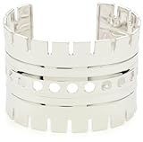 The ELLE Jewelry "Old World Metal" Sterling Silver Bangle Bracelet offers an elegant look with a versatile design that works for your fashionable wardrobe. Made from 925 sterling silver, the open-back cuff features a polished, shiny surface. The bangle offers circular cut-outs and ridged edges for added detail. For a signature stamp that represents the ELLE jewelry collection, a red ruby stone is inset onto the band. The wide bangle is 7 inches long and fits most adult wrists.