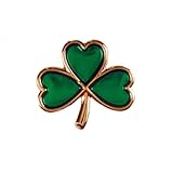 Gold plate Shamrock lapel pin with green epoxy fill. Single clutch back. Size: 15/16"w x 7/8"h. Individually carded.