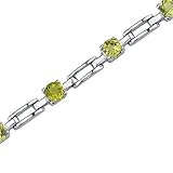 Gemstones: Genuine Peridot: 11 pieces, Round Shape, 4.00 mm, 3.00 carats total weight. Gemstones have a deep rich color and tremendous fire. Bracelet: 8.90 grams Pure Sterling Silver with .925 stamp 7 1/4 length, 1/8 width. Bracelet features one of a kind design with a beautiful White Gold finish. 100% Money Back Guarantee. Includes a Signature Gift Box.