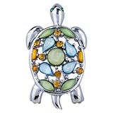 Use a brooch to accessorize your favorite outfit or spice up apparel that just needs some extra kick. The Pugster green and blue shell turtle Brooch is made from silver plated metal, accented with green and purple Czech stone. This Pugster brooch is perfect to give a fun, artistic flair to whatever it is that you are wearing. Pugster created each brooch for people who love high quality handcrafted jewelry with a price that is sure to make you smile. This brooch fastens securely with a metal pin clasp. Crafted and authenticated by Pugster (TM) Inc., these green and blue shell turtle brooches are available for both retail and wholesale purchase through our store.