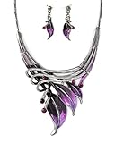 Here is a stunning hand painted purple leaf necklace and earrings set. This piece has gorgeous purple leaves accented with purple rhinestones! You are sure to dress for success wearing this piece! Necklace comes with matching dangle earrings! It measu