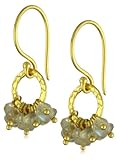 Style and natural beauty are bountiful in the Heather Benjamin "Abundance" Labradorite Mini Circles Earrings. A gold-plated sterling silver fishhook back comes down to a capped curl, which supports a gold-plated silver ring with a hammered texture. This ring hosts a bounty of roughly faceted labradorite gemstones, which bring a lovely opaque appearance to the existing gold-toned backdrop. These labradorite stones hang like a bunch of cherries from a tree just waiting to be picked. Be sure to pick up yours today.