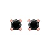 These classy diamond stud earrings are an essential accessory that can be worn everyday as well as on special occasions, with almost anything. Elegantly set in a 14K pink gold 4 heart shaped prong basket setting this 2 black diamond earrings will be a favorite in any woman's collection.