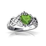 Celtic jewelry has long been known to use many symbols of love, but no style of Celtic jewelry carries as much meaning as the Trinity Knot. A Trinity Knot adds a special emotional deepness, which symbolizes infinite love, faith, loyalty and protection. The beautiful and intricate curvy lines of a Celtic knot symbolize no beginning, no ending, and the continuity of everlasting love or the intertwining of two souls.This celtic claddagh knot ring features a 6mm heart-cut peridot center stone. The total gem weight for the ring is 1 carats, set in solid 14k gold. The band is 7/16 of an inch at its widest point tapering down to 1/16 of an inch at the back, and is 1/4 of an inch high off the finger.