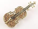 Designed on gold toned alloy metal, this lovely violin fashion brooch pin is decorated with light topaz colored rhinestone crystals. It will make a great gift or great addition to any collection. Please scroll down for more pictures.