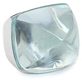 The Nicky Hilton "Bryant Park" Sterling Silver Aqua Blue Obsidian Sugar Loaf Ring strikes just the right note between classic and modern. The oversized cocktail ring features a large obsidian crystal with a multifaceted cut. The aqua blue color and subtle sparkle provide just the right sophisticated style for the urban woman. Made from 925 sterling silver, the stone's setting and band offer a polished look that pair well with the bright blue stone. The ring feels comfortable on from morning to night.